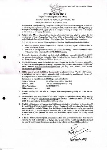 E-Bidding मार्फत बाेलपत्र आह्वानकाे सूचना ......प्रथमपटक प्रकाशित मिति २०८२/०७/०२