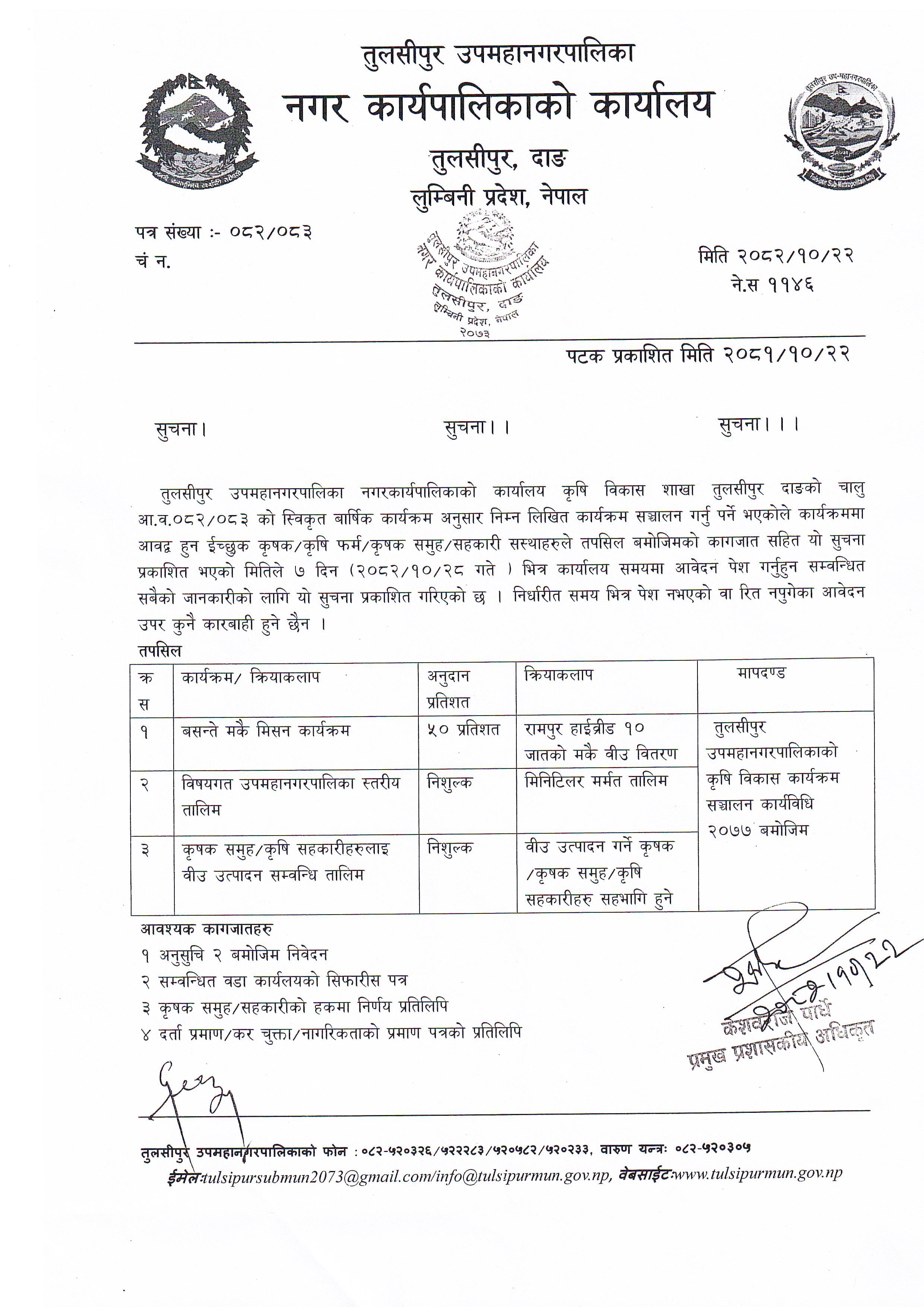 कृषकहरुको लागि सूचना.. २०८२/१०/२२