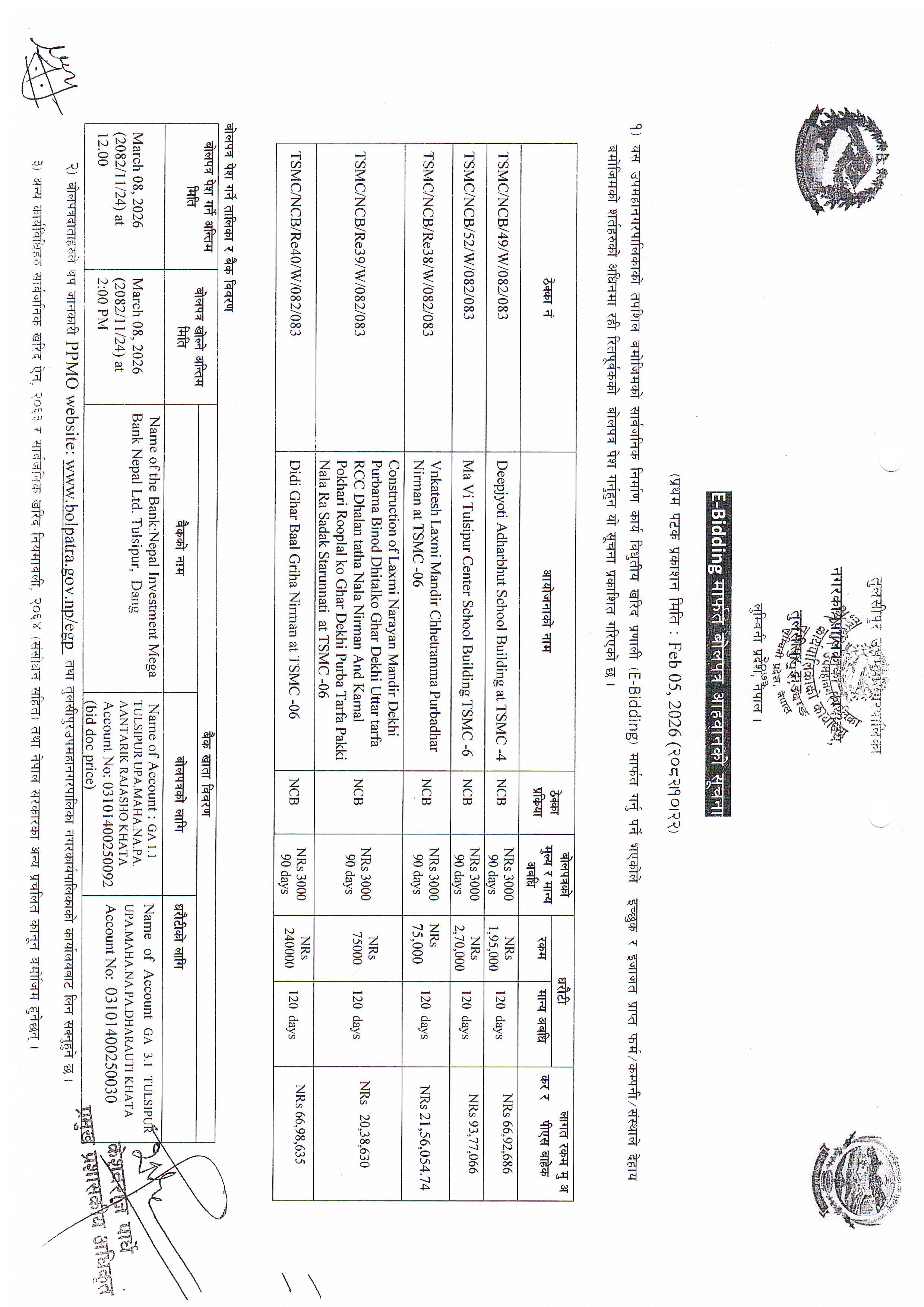 E-Bidding मार्फत बोलपत्र आव्हानको सूचना ... प्रथम पटक प्रकाशित मिति : २०८२/१०/२०