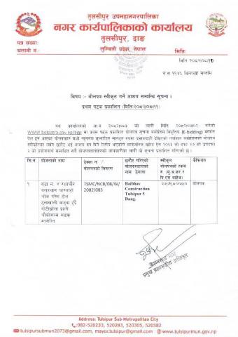 » बोलपत्र स्वीकृत गर्ने आशय सम्बन्धी सूचना २०८२/०८/०११