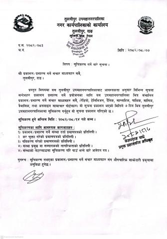 नदिजन्य पदार्थको बिक्रि शुल्क उठाउने सम्बन्धमा बोलपत्र आव्हान सम्बन्धि सूचना
