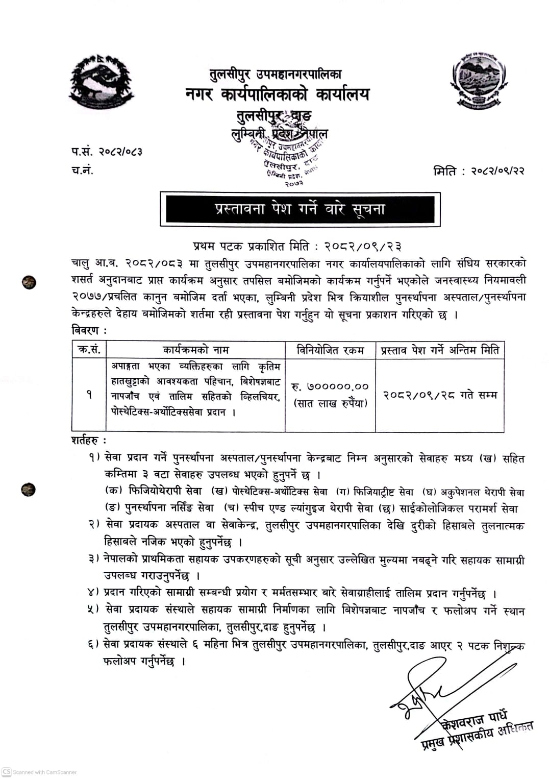 प्रस्तावना पेश गर्ने सम्बन्धी सूचना प्रथम पटक प्रकाशित मिति : २०८२/०९/२३