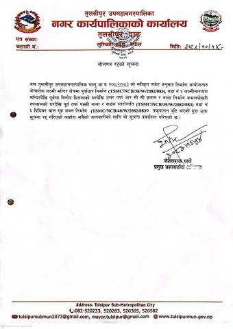» बोलपत्र रद्दको सूचना २०८२/१०/१४