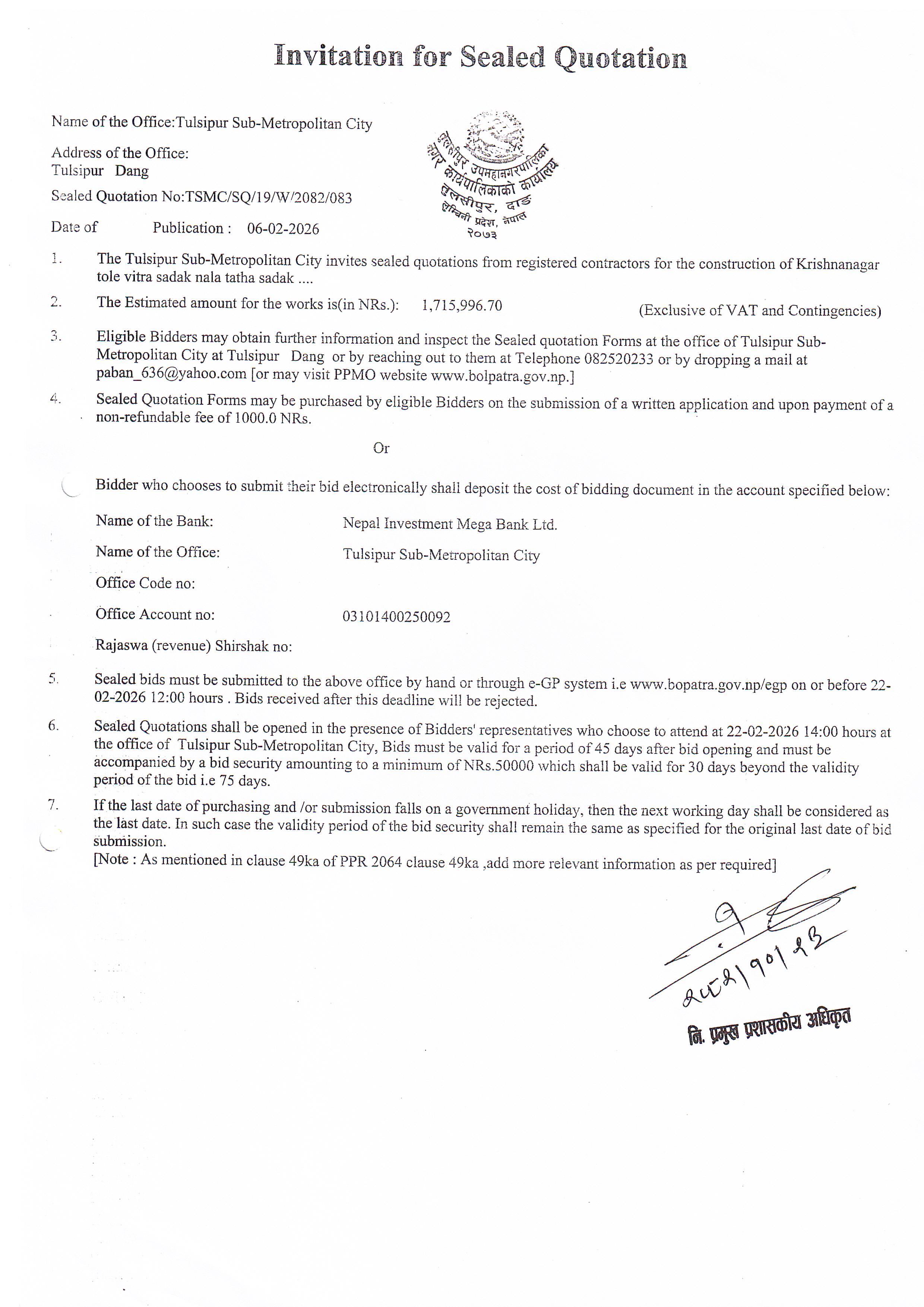 E-Bidding मार्फत बोलपत्र आव्हानको सूचना .. प्रथमपटक प्रकाशन मिति : २०८२/१०/२३
