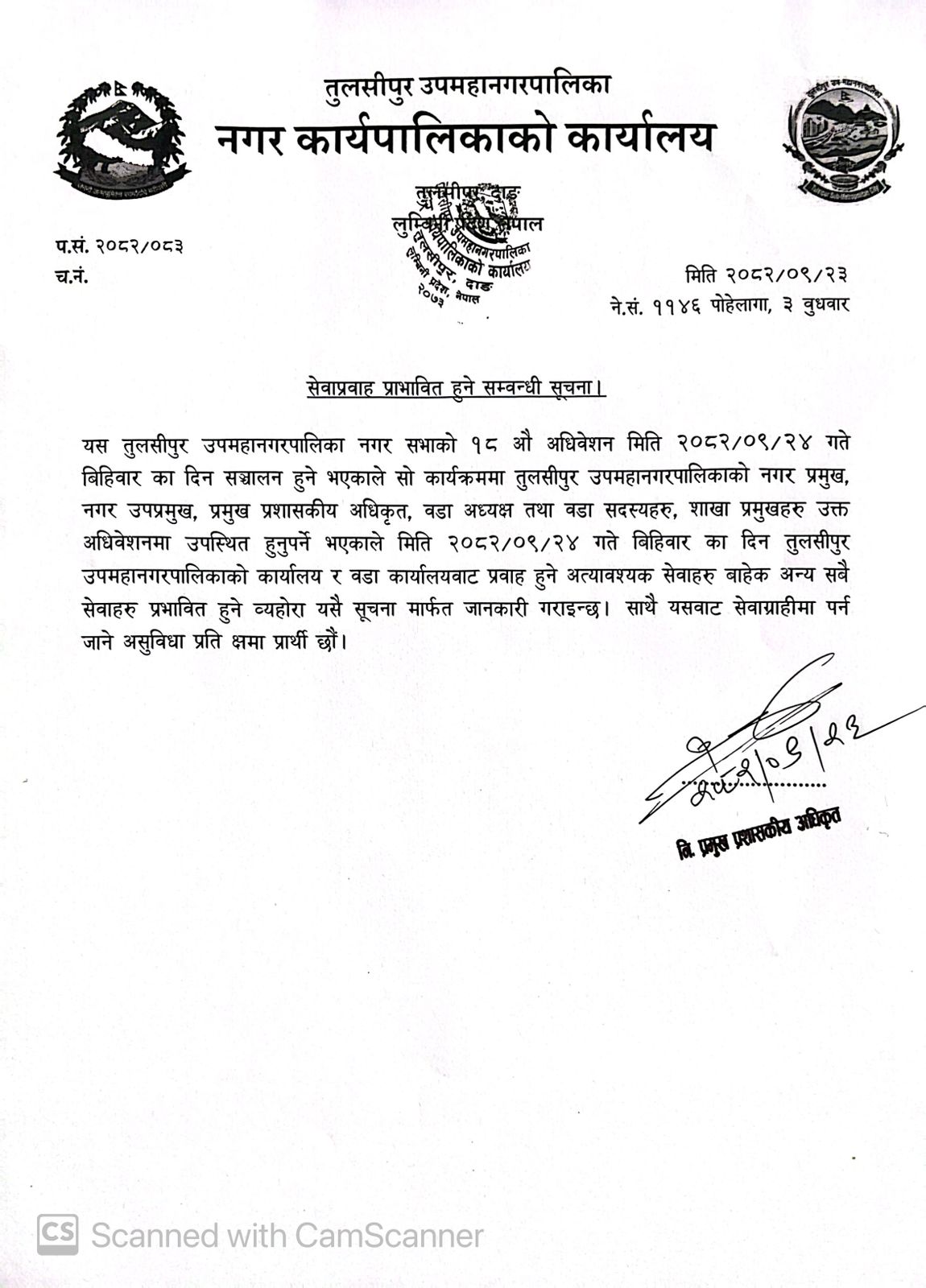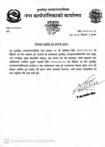 सेवाप्रवाह प्रभावित हुने सम्बन्धी सूचना २०८२/०९/२३